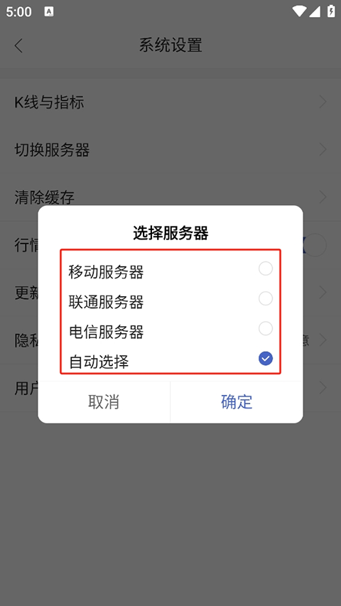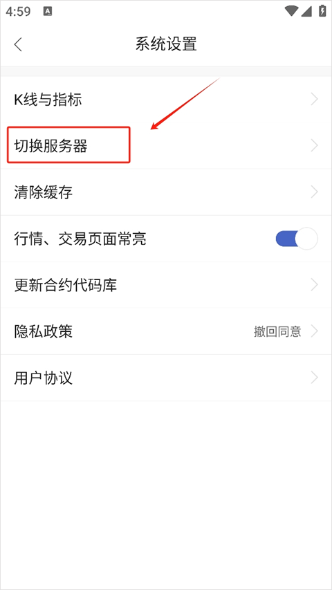 3、这个时候就会进入到“系统设置”界面,选择“切换服务器”。