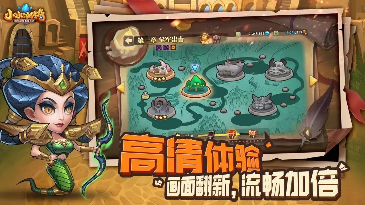 1、高清的画质会让玩家感受到更加激烈的战斗画风,游戏内的自由度也是非常高,玩家可以学习不同属性卡牌的作战玩法