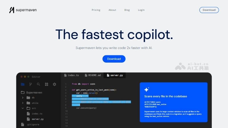 - AI 代码补全:使用人工智能技术,Supermaven 能提供快速且高质量的代码建议,帮助开发者加快编写代码的速度。